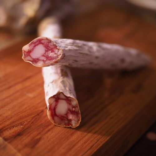 館ヶ森アーク牧場からのお取り寄せの大本命「白カビカルパス」です そのままスライスして食べられるほどよい塩加減、白カビ熟成は表面の見た目も美しく、風味もたいへんに良好、噛めば脂がまろやかに染み出し肉の旨味が心地よく広がる。すばらしく美味しい逸…